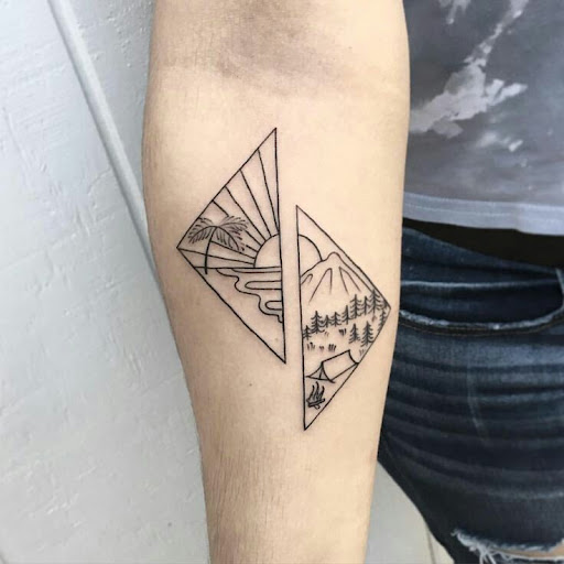 These tattoos are often colored, but can also be done in a traditional black and grey style. Often contemporary and elegant in style, they have a range of meanings and leave plenty of scope for creativity and expression. You can get this mountain tattoo in a quintessential diamond shape that will give a unique look and is an excellent idea for a landscape tattoo.